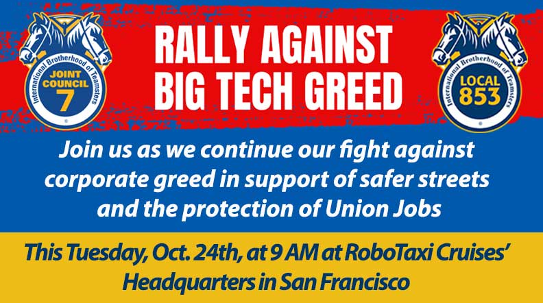 Autonomous Vehicles are not ready, Join us as we take the fight to RoboTaxi Company, Cruise, in San Francisco this Tuesday, Oct. 24th